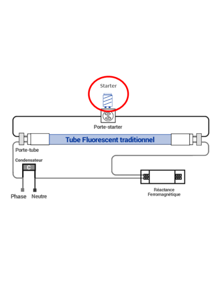Ce starter permet de faire fonctionner un TUBE FLUORESCENT T8, d’une puissance minimale de 4W et d’une puissance maximale de 80W.